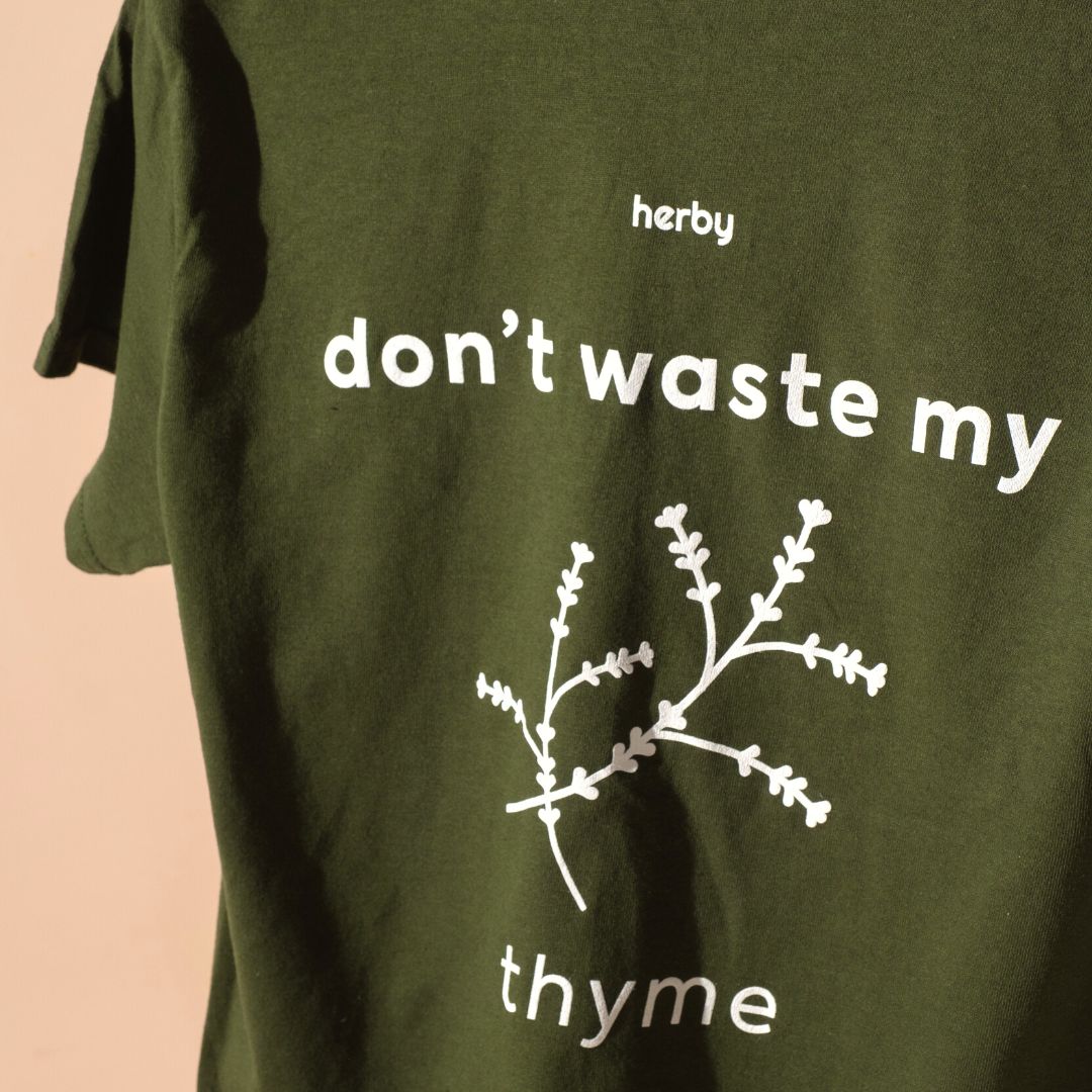 The revolution of herbs and natures powers is can be felt and the benefits seen on our skin. Now it can also be worn with our sustainable 'don't waste my thyme' t shirt.